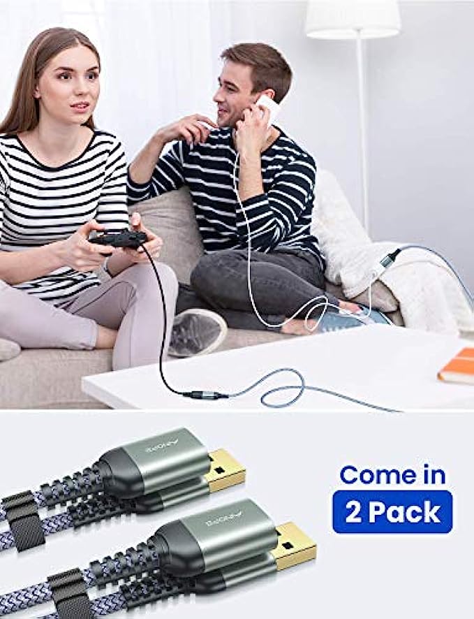 2 PACK 6.6FT+6.6FT AINOPE USB 3.0 Extension Cable Type A Male to Female Extension Cord DURABLE BRAIDED MATERIAL Fast Data Transfer Compatible with USB Keyboard,Mouse,Flash Drive, Hard Drive