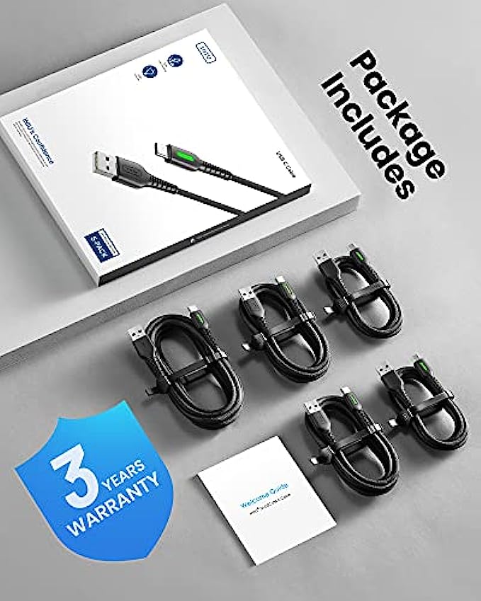 ✅【One package, 5 Fast Charging Cables】 The real one-stop cable solution, with two 3.3fts, two 6fts and one 10ft, you’ll wonder why you bother to buy any extra cables. Share them with your family or friends or simply put them anywhere you want to stay powered. They’ve got your needs all covered.
